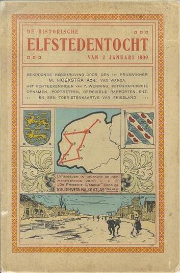 Op 2 januari 1909 was het zover. De Friesche IJsbond schreef voor de eerste maal een officiele Elfstedenwedstrijd uit. Het te winnen kruisje (dat deelnemers van de Elfstedentocht nu nog krijgen) was door 'Pim' Mulier ontworpen.